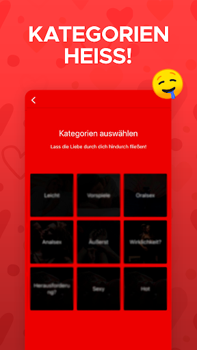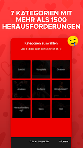 - Die Kategorien erscheinen und Sie können mehr als eine auswählen, dann klicken Sie einfach auf Weiter! So haben Sie mit Ihrem Partner jede Woche mehrere Anregungen für neue erotische Herausforderungen.