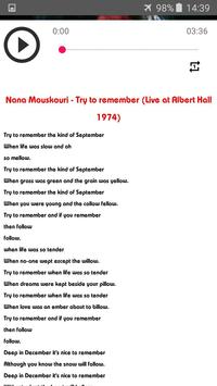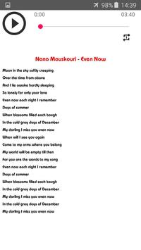 Dans cette application, vous trouverez les meilleures chansons de Nana Mouskouri téléchargez gratuitement l'application sur vos smartphones pour une durée illimitée et profitez des meilleures hits avec une haute qualité de son et sans Internet.