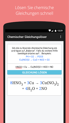 Der chemische Gleichungslöser ist eine kostenlose, leicht anwendbare App zum Lösen chemischer Gleichungen