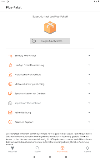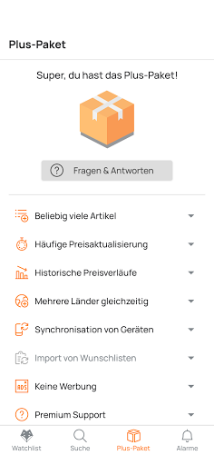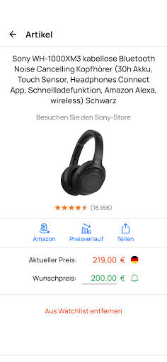 Die integrierte Suche erleichtert das Auffinden und Hinzufügen von Amazon-Artikeln zu deiner Watchlist. Du kannst Artikel auch über die Amazon-App oder den Browser hinzufügen.