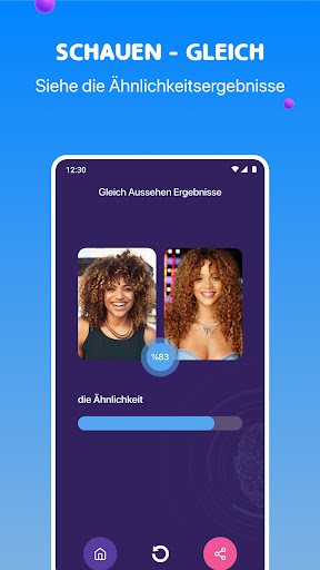 Dank der Unterstützung der DNA-Analyse können Sie die Ähnlichkeit zwischen Ihnen erkennen, indem Sie ein Foto von jemandem hinzufügen, von dem Sie glauben, dass er Ihnen ähnlich sieht. Dank der Look-Alike-Funktion können Sie sehen, wie viel Prozent Ihrer Ähnlichkeit bestehen. Unsere DNA-Analysefunktion untersucht die Ähnlichkeit Ihrer Gesichtsform, Hautfarbe, Kieferstruktur, Augenfarbe und -form und berechnet Ihre Ähnlichkeit mit Hilfe von KI auf genaueste Weise. Dank der Look-Alike-Funktion kannst du außerdem herausfinden, wie ähnlich du einem Promi, den du liebst, und deine Ähnlichkeitsrate bist.