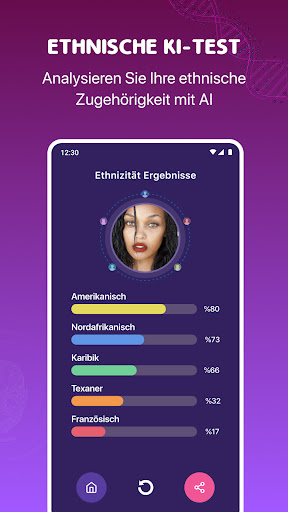 Willkommen bei DNAlyzer! Die unterhaltsamste und realistischste Art, Ihre Ethnizität, DNA- und Gen-Analyse, Look-Alike- und Altersschätzung zu erlernen! Die Dnalyzer-App erstellt Ihre Rassen- und Nationalitätsanalyse mit Gradient AI. Diese App testet Ihre Ethnizität. DNAlyzer versucht, Ihre Abstammung und die Herkunft Ihrer Familie vorherzusagen. Die intelligente Gradiententechnologie durch künstliche ethnische Gesichtsform, Hautfarbe, Haarfarbe und Augenstruktur bietet eine optimale Genauigkeit der Ergebnisse unter Berücksichtigung der physikalischen Eigenschaften von Kiefer und Gesicht. Basierend auf den Ergebnissen können Sie einen neuen Wendepunkt in Ihrem Leben einfangen. Verfügt über einen DNA-Analysator mit künstlicher Gradientenintelligenz, mit dem Sie das genetische Erbe dank der geneigten Gradientenintelligenz lernen können. Genealogische Rassen-DNA-Analyse. Sie können erfahren, welche ethnische Herkunft der Gene in Ihnen kommt.