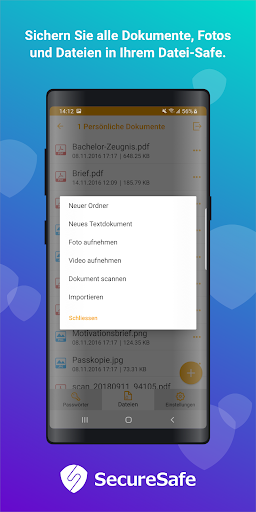 • SecureCapture: Die integrierte Upload-Funktion ermöglicht Ihnen, ein wichtiges Dokument zu fotografieren und es direkt in Ihrem SecureSafe zu speichern.