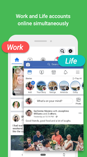 • Run two accounts simultaneously and switch between them fast with one-tap to effective manage different accounts.