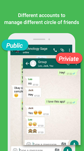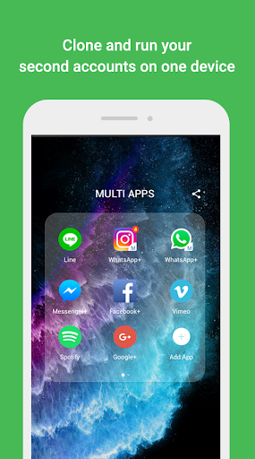 • Almost all apps are supported for a second account in Dual Space Whatsapp - Multiple Accounts, Space & App Cloner. Data from both accounts won't interfere with each other.
