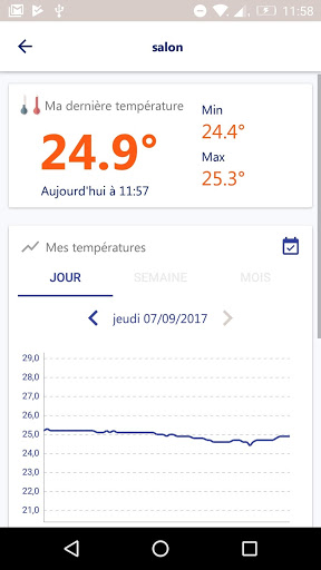 A l’aide à l’application, vous pouvez visualiser la température actuelle ainsi que l’évolution de la courbe dans le temps. Vous pouvez également être alerté lorsque la température est trop haute ou trop basse.