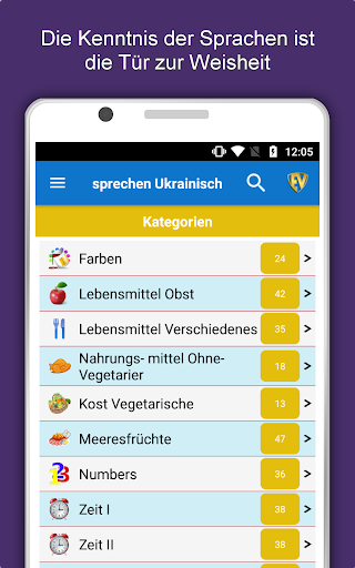 Die Offline-ukrainische Lern-App hat 2135 Wörter mit 55 Kategorien. Es enthält Aussprache, Bilder und Phonetik von Wörtern für einfaches Lernen. Schalten Sie die Basissprache, sparen Sie Lernen in EduBank℠, Audio-Play, Potpourri und Retention-Spiele sind die Hauptmerkmale von Spreche ukrainische App.