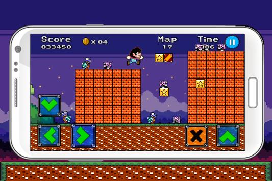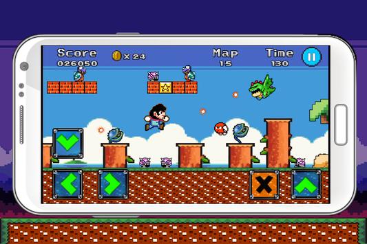 is a journey of super boy. In heat jungle, Mario must pass so much threats to run to target world. On his road, Mario can use weapon to kill monster but weapon is hidden in somewhere.
