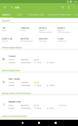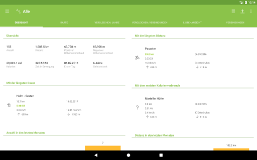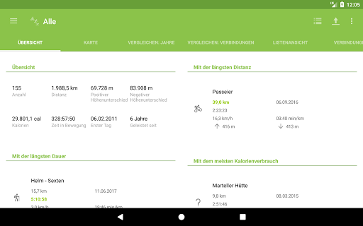 - Anzeige der Aktivitäten mit der längsten Distanz, Dauer und mit dem höchsten Kalorienverbrauch