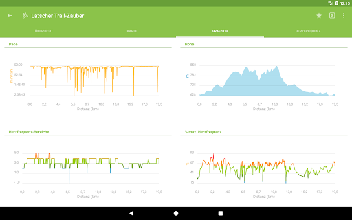 - Verschiedene Grafiken über die Geschwindigkeit, Herzfrequenz, Höhenmeter usw