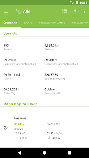- Übersicht mit einer Zusammenfassung von der gesamten Distanz, Dauer usw