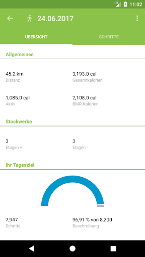 - Auflistung der täglichen Schritte mit Detailansicht