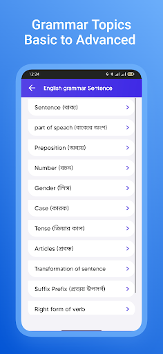7. This Grammar App help to learn sentence Part of speech Bangla to English, English to Bangla Translations.