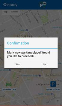 Sie müssen Ihren Parkplatz-Adresse speichern mit dem "Mark my car " Option. Wenn Sie möchten zurück nach auto gehen so drücken Sie "Go to my car" Option.