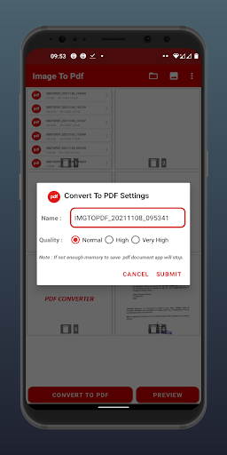 Image To PDF Converter is an app which converts image to pdf document. It enables you to select multiple images found in your device and convert them to one pdf document.