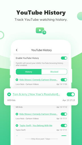 ✔ Famikit hilft dabei, die YouTube-Watch-Historien des Kindes aus der Ferne zu verfolgen und unangemessene Videos oder Kanäle zu blockieren.