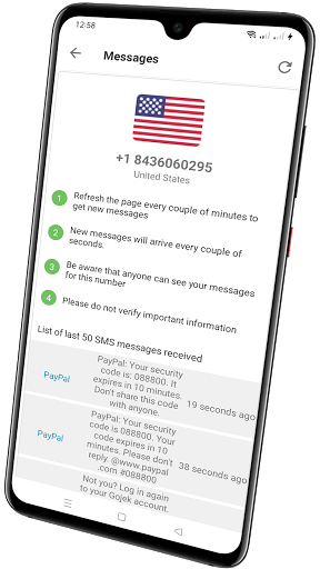 Der Anwendungs-SMS-Empfänger bietet Ihnen eine Telefonnummer in verschiedenen Ländern, in denen Sie SMS senden können, dann wird die Meldung auf der Anwendung angezeigt.