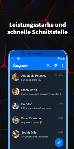 Leistungsstarker und schneller Smsgram Messenger. Eine super benutzerfreundliche Oberfläche ähnlich Telegram macht Ihre Kommunikation per SMS angenehm. Die App enthält auch mehrere einzigartige Funktionen.