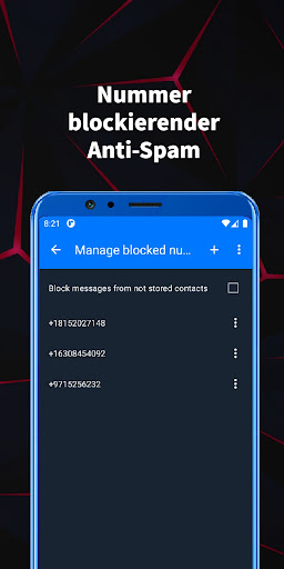 Die Funktion zum Blockieren von Nummern und Spam-Nachrichten ist verfügbar. Wir kümmern uns um unsere Benutzer und haben eine zusätzliche Funktion hinzugefügt, die Ihnen hilft, Spam zu blockieren.