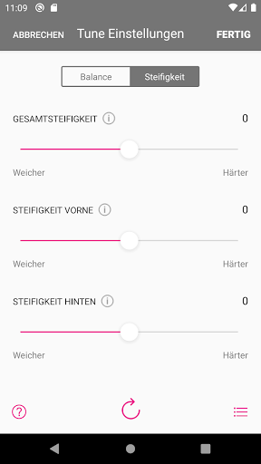 Erweiterte Einstellungen zum Anpassen von Balance und Steifigkeit der Tunes