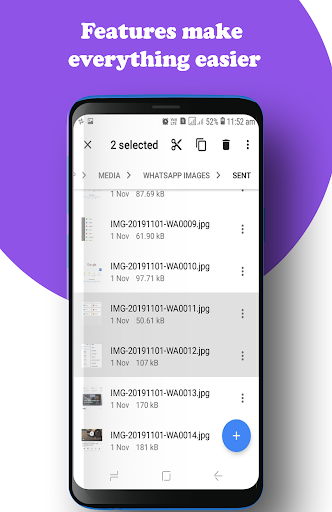 Verwalten Ihrer Dateien wie Sie auf Ihrem Desktop oder Laptop mit mehreren Auswählen, Schnitt / Kopieren / Einfügen, verschieben, erstellen, löschen, umbenennen, suchen, teilen, senden, Verstecken, Verknüpfung erstellen und Bookmark erstellen.