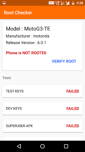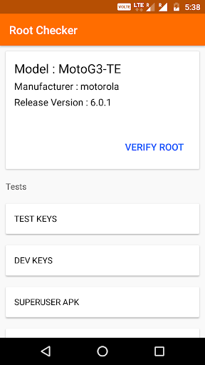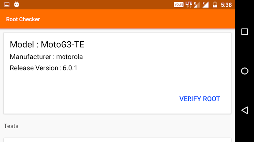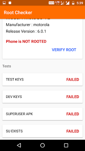 Verify proper root access is configured, Root Checker shows the root status of phone by checking four tests.