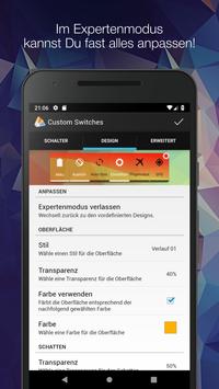 kannst du Schalter Widgets auf deinem Homescreen platzieren, die dir das Ändern und Umschalten verschiedener Systemeinstellungen ermöglichen. Dabei kannst du dem Widget verschiedene Schalter deiner Wahl hinzufügen und das Design nach deinen Wünschen ändern. Es steht dir offen eines von vielen vordefinierten Designs zu wählen, dieses anzupassen oder dein ganz eigenes Design zu erstellen.
