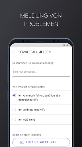 • Meldung von Problemen. Melden Sie Ihrem Unternehmen während der täglichen Überprüfung oder zu jedem Zeitpunkt während des Tages rasch und mühelos Probleme mit Ihrem Fahrzeug.