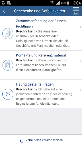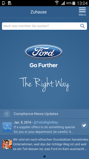 Die mobile App “The Right Way” ist ein Hilfsmittel, welche dazu gedacht ist, Mitarbeitern von Ford und seinen Geschäftspartnern schnellen Zugriff auf Informationen zu geben, um ethische Entscheidungen entsprechend der Firmen Geschäftsgrundsätze zu treffen.