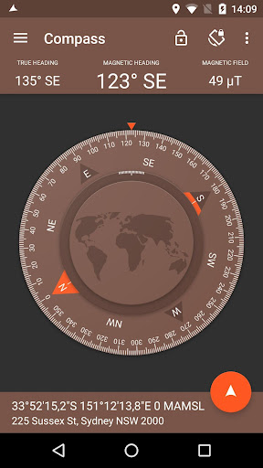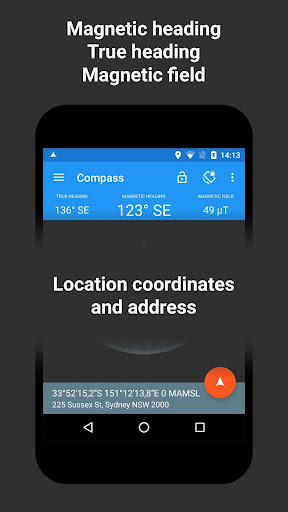 • Zeigt Magnetkurs, wahre Überschrift, Magnetfeld,Standort und Adresse.