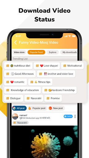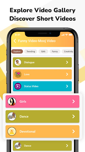• Find famous video clips on trending like dance, music, comedy, jokes, pranks, challenges, Bollywood, fashion and social media video status download