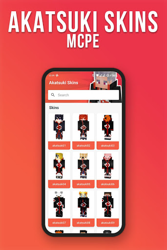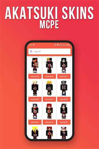 Sie finden schöne HD-Skins von Akatsuki Ninja und andere.Akatsuki-Skins für Minecraft Pe ist sehr einfach zu bedienen.Klicken Sie einfach auf die Schaltfläche, um mit Ihrer Lieblingshaut zu spielen oder zuerst das Spielen zu spielen.