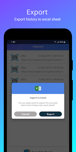 Not only scanning, but also you can find an option to export the history of scanned item as Excel sheet.