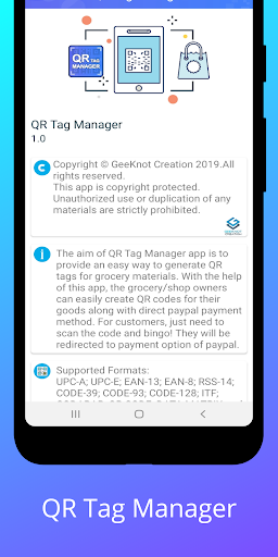 QR Tag Manager is a completely free application for scanning QR and Barcode along with QR Tag generating and online payment feature. QR Tag Manager app offers payment system via Paypal through QR Code Scanner service.