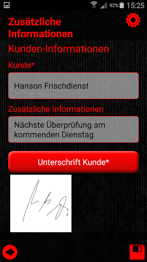 Der Kontrolleur kann die Ergebnisse der Untersuchung des Schädlingsbefalls durch Unterschrift auf dem mobilen Endgerät bestätigen.