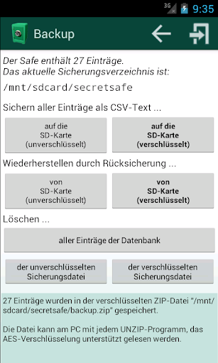 * Eine sichere Backup-Funktion die ZIP-Dateien mit AES-Verschlüsselung verwendet.