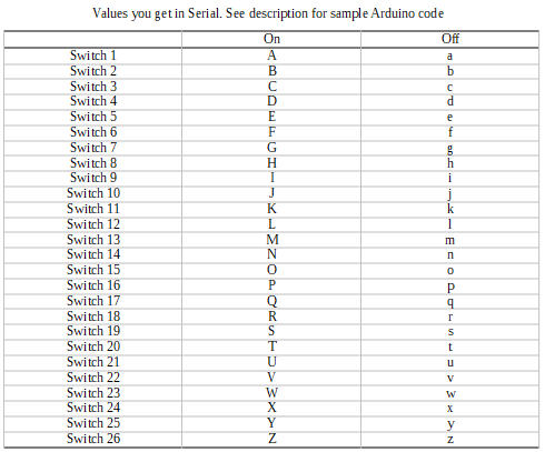 Diese App sendet ein einzigartiges Zeichen, wann immer ein Schalter eingeschaltet oder deaktiviert ist.