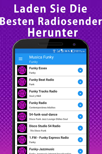 Die Radiosender, die Sie in dieser App finden sind bei der Übertragung der besten Funk-Musik spezialisiert, vor allem die Funk der 70er und Funk der 80er Jahre, alte Schule, Pop Funk Soul und Funk. Hier können Sie stimmen die besten Funk-Songs, die beste Soul Funk Funk und die Top-Songs die meisten hörten auf allen Radiostationen, die meisten Vertreter der Funk-Musik aller Zeiten und die besten Funk-Songs bei beliebtesten Radiosender Funk. Sie können auch Funk-Tanzlieder und das meistgehörte Funk-Lied anhören. In dieser App finden Sie die besten Funk-Künstler und die bekanntesten Funk-Rock-Bands, die die Funk-Songs spielen, die Sie jederzeit und an jedem Ort anhören können. In ihnen kann man 24 Stunden am Tag Funkmusik hören. Viel Spaß beim Hören in dieser App Die beste Funkmusik dieses Genres wird von einem großen Teil der amerikanischen Bevölkerung gehört.