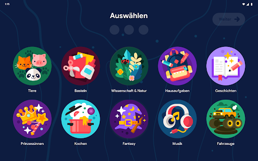 Ob Tiere oder Basteleien – wenn Kinder sich für etwas begeistern, entwickeln sie sich schnell zu kleinen Experten. Deshalb werden deinem Kind in Google Kids Space hochwertige Inhalte vorgeschlagen, die auf seinen ausgewählten Interessen basieren. Mit diesen empfohlenen Inhalten können Kinder auf neue, interaktive Weise ihrer aktuellen Lieblingsbeschäftigung nachgehen. Kinder können sogar einen eigenen Avatar kreieren