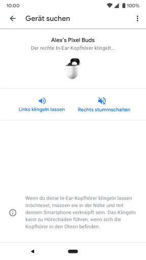Mit der Google Pixel Buds App kannst du deine Pixel Buds direkt von deinem Gerät mit Android 6.0 oder höher aus einrichten und verwalten. Du kannst ganz einfach den Akkustand deiner Kopfhörer und des Lade-Cases prüfen und Funktionen wie Automatische Klanganpassung, Trageerkennung, Google Assistant und Benachrichtigungen vorlesen sowie die Funktion zum Finden der Kopfhörer verwenden.