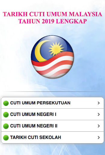 Dapatkan maklumat tarikh - tarik penting bagi cuti umum di Malaysia untuk tahun 2018 dan 2020 dengan mudah disini. Kami menyajikan maklumat berkenaan dalam bentuk gambar agar mudah dilihat. Kami menyenaraikan maklumat cuti persekutuan dan juga cuti negeri.