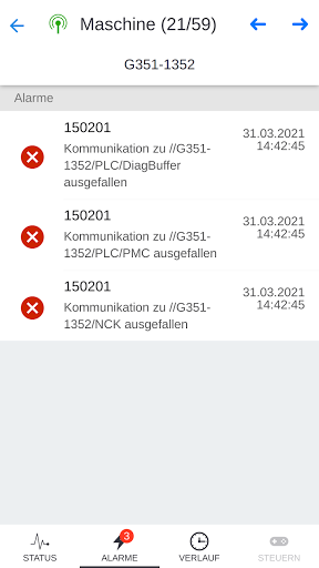 • Benachrichtigung über Maschinenstillstand per E-Mail