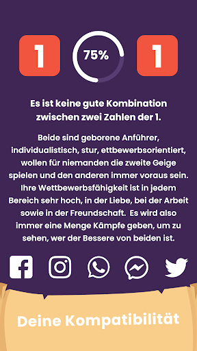 Teile deine Vorhersagen und numerologischen Informationen mit der Welt! Du hast die Möglichkeit, dies über die App mit Instagram, Twitter, Facebook oder Whatsapp zu tun.