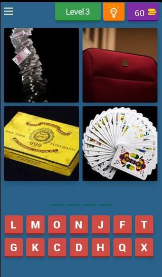 The most popular word game around. Challenge your cognitive skills and test your vocabulary in a timeless manner. Guess the word from the four pictures given. Suitable for all ages. Play any time and lose yourself in the amazing world of words and pictures. A total of 260 EXCITING LEVELS available.
