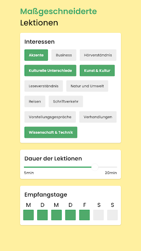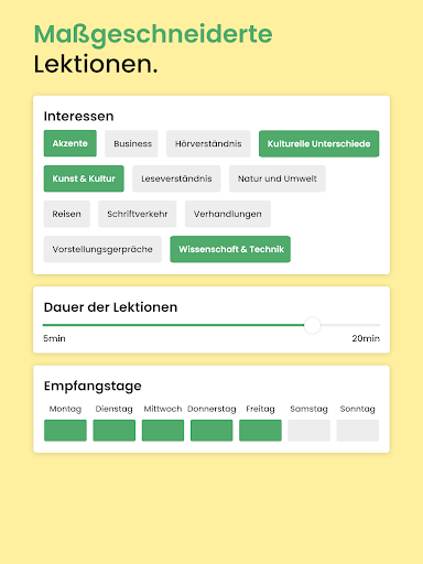 3. Die Lektionen passen sich Ihren individuellen Sprachkenntnissen und Ihren Interessen an.