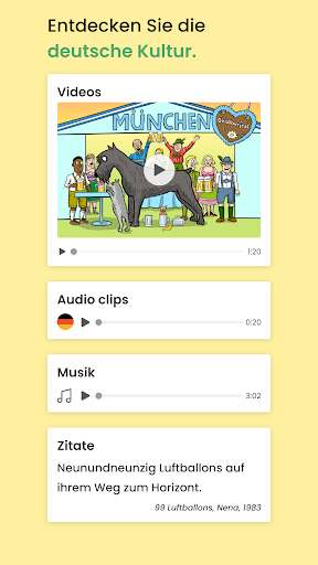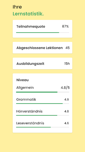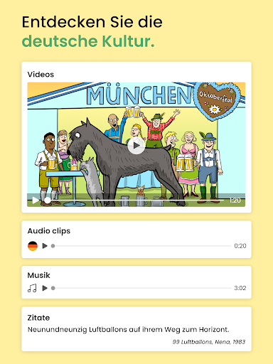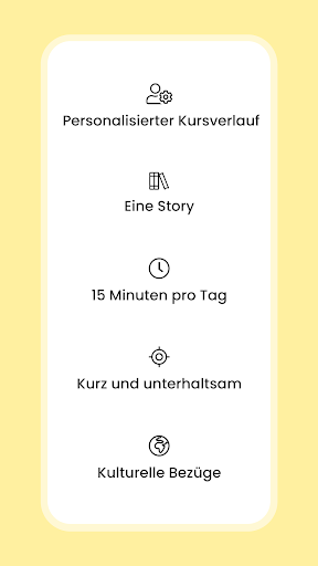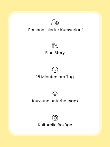 Spaß am Deutschlernen. Dank der dynamischen Struktur (per E-Mail oder Push-Benachrichtigung, kurze Lektionen, verschiedene Handlungsstränge usw.) bleiben Sie motiviert, regelmäßig Ihre Lektionen zu bearbeiten.