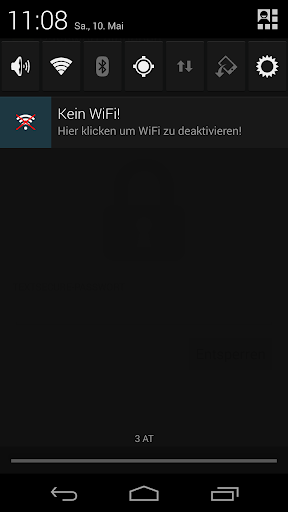 No WiFi warnt mittels Benachrichtigung wenn Ihr WLAN aktiviert ist, Sie aber keine aktive Verbindung zum Internet haben oder gar keine Verbindung zu einem Access Point. In diesem Fall verbraucht das aktivierte WLAN also unnötig Batterie.