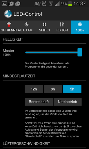 * Laufzeit der Lampen festlegen