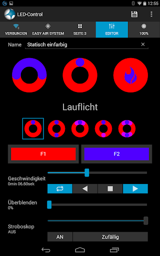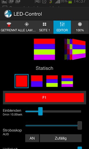 * Farbe, Helligkeit, Geschwindigkeit und Überblendung einstellen