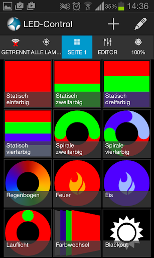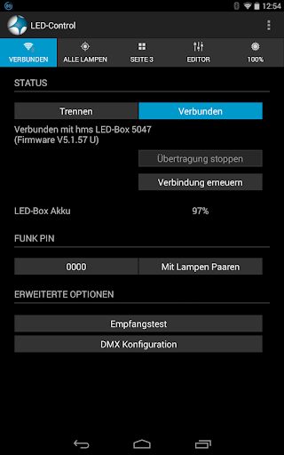 * Programme und Effekte an die Lampen senden